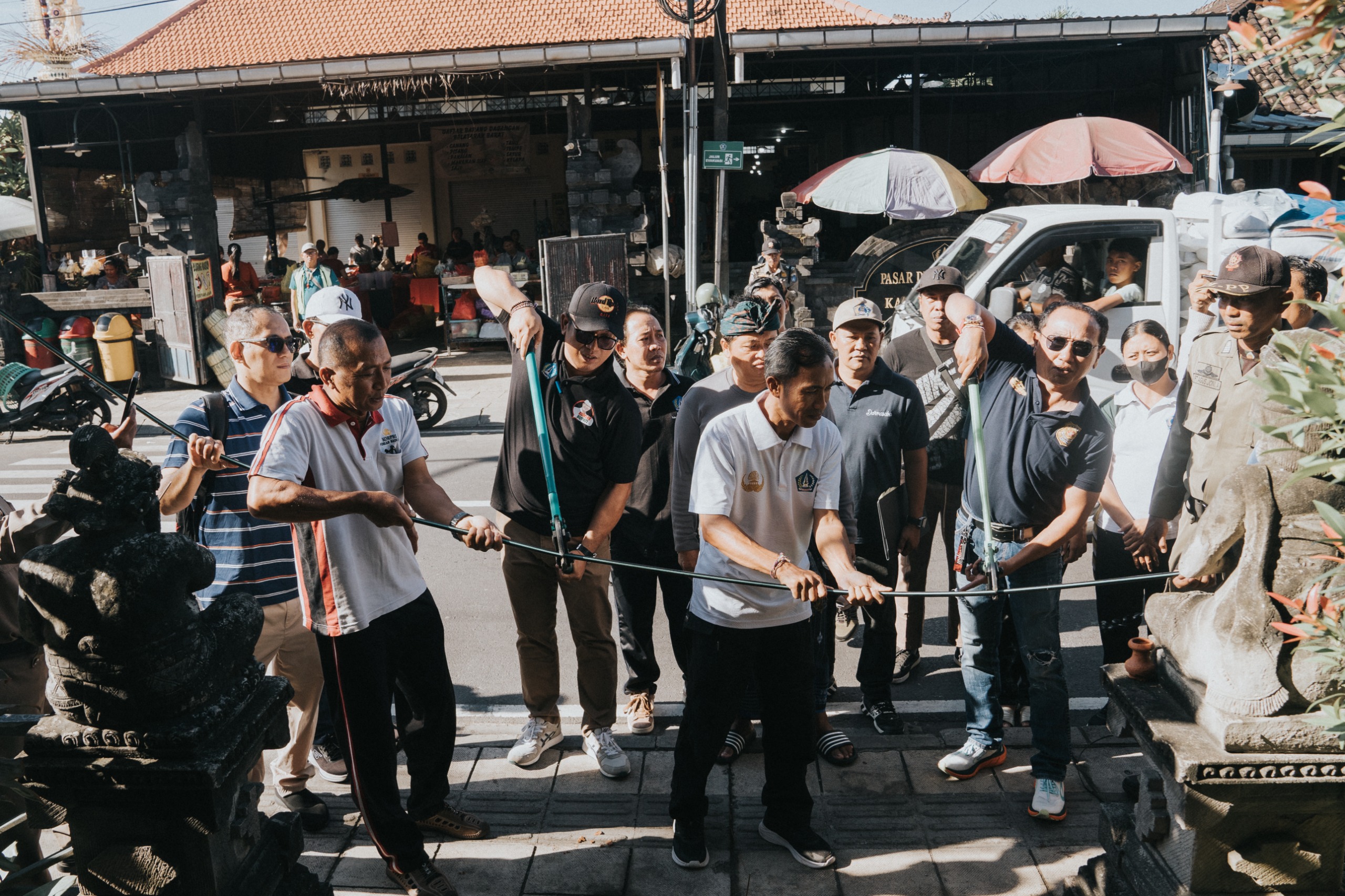Kabel-kabel sembrawut dari beberapa provider, dipotong, diturunkan dan dibersihkan. Penurunan kabel dilakukan petugas provider, dibantu petugas dari Dinas PUPR dan DLHK Badung, sementara Satpol PP berjaga mengantisipasi keamanan jalannya penertiban. Penertiban utilitas di sepanjang jalan utama wilayah Desa Darmasaba, Jumat (10/04/2026) tersebut, ditandai pemotongan kabel provider secara simbolis oleh Plt. Kadis PUPR diwakili Kabid Bina Marga I Putu Teddy Widnyana Putra, ST, Kasatpol PP I Gusti Agung Ketut Suryanegara, Camat Abiansemal IB Putu Mas Arimbawa serta dari pihak Desa Darmasaba.